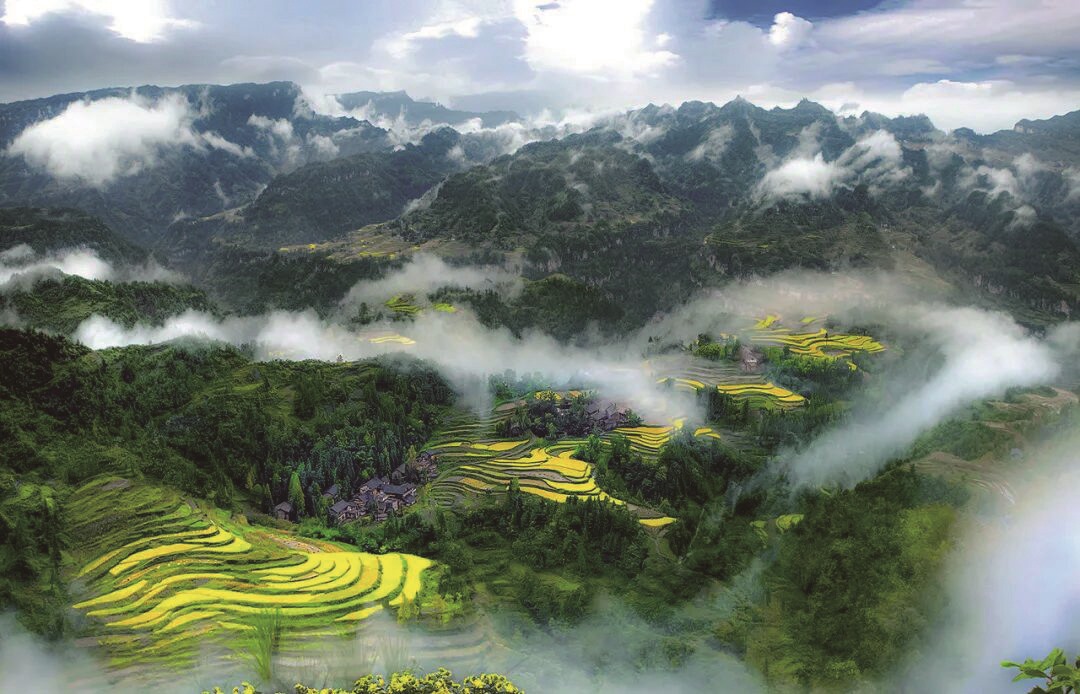 如果说齐岳山是豪放的壮汉,那么利川的村镇则是婉约的女子。清晨,薄雾如轻纱般弥漫在河流及其两岸,朦胧中树影和房舍若隐若现。