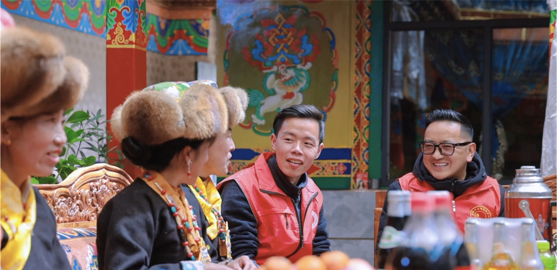 2021年,田权主动向组织申请到赤康村驻村。那时的他,身上还带着一股“外来气息”,穿着精致,只讲得来普通话。“刚驻村第二天,有村民来村委会办事,我听不懂藏语,只能看着群众用手比划,不明其意,自己也慌。”为早日融入村里这个大家庭,田权穿起了藏装,跟着驻村队一起走访入户,每天学几句简单的问候语,收青稞、办手续,开油票……田权都是随叫随到。就这样,他从最开始的“城里来的学生”,变成了村民们口中信任的“洛吞亚布(译为好同志)”。