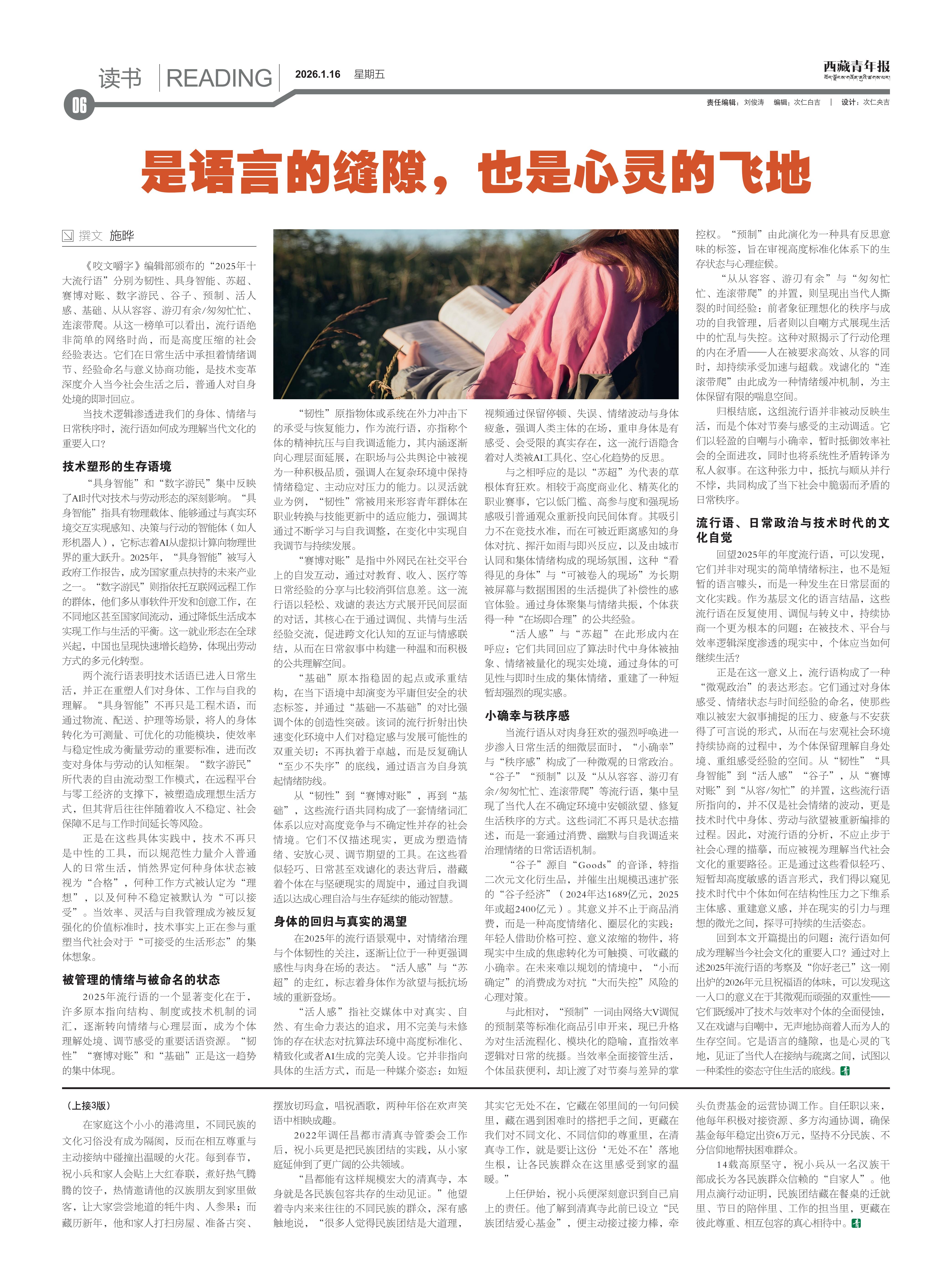 西藏青年报社出版 | 国内统一刊号:CN54—0006 | 邮发代号:67—11