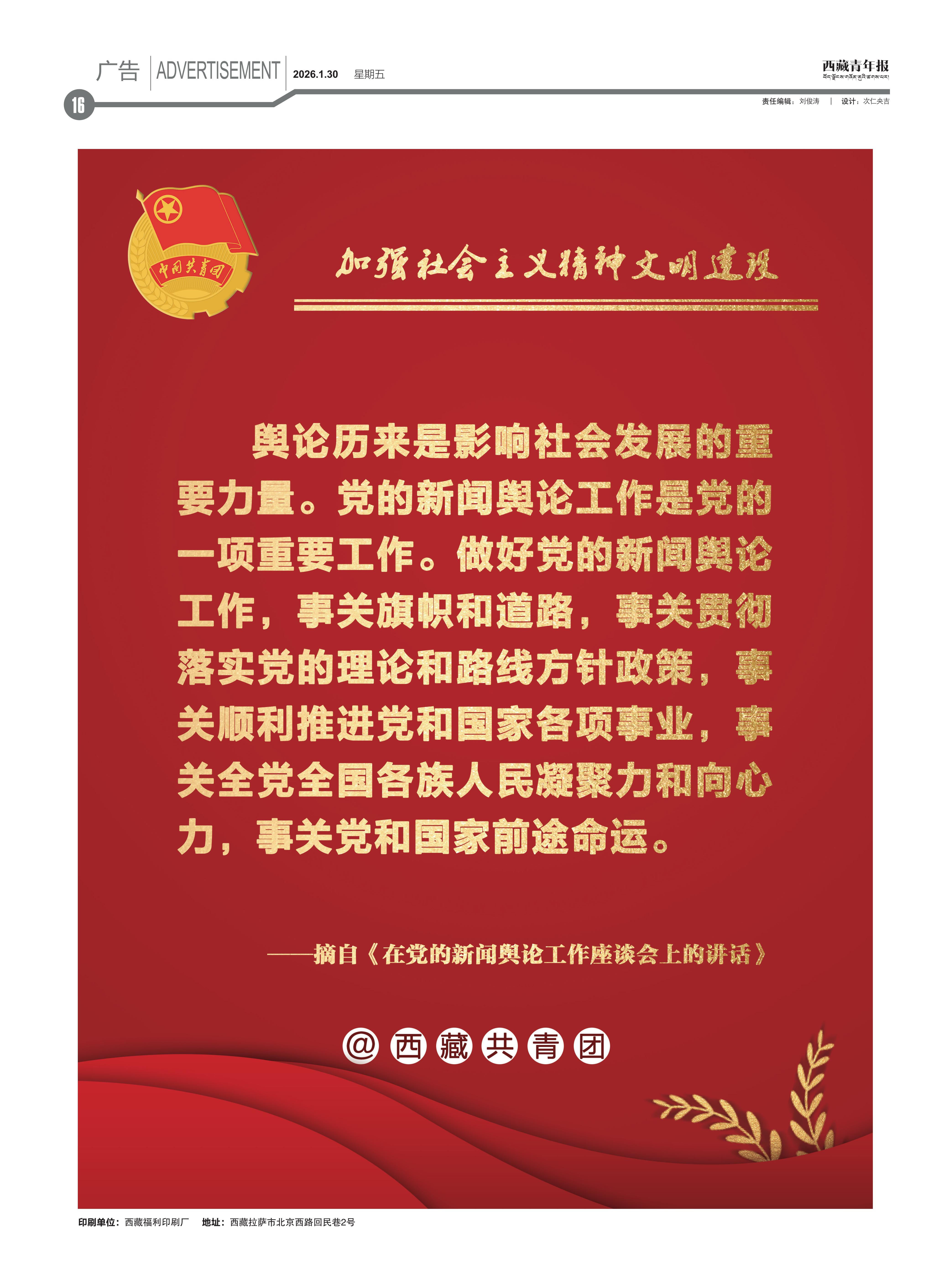 西藏青年报社出版 | 国内统一刊号:CN54—0006 | 邮发代号:67—11