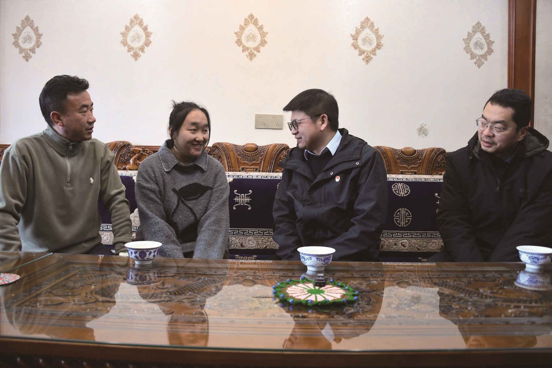 巡查完工地后,夏洪和同样留守的援藏教师冉越溢,又准备对高三学生旦增贡宗进行一次家访。推开旦增贡宗家的门,一股暖意扑面而来。客厅里,崭新的五彩“切玛”盒装点着春节、藏历新年的喜庆氛围。旦增贡宗的父母热情地将夏洪和另一位老师迎到家里,倒上热乎的酥油茶,端上新炸的“卡塞”和风干牦牛肉。
