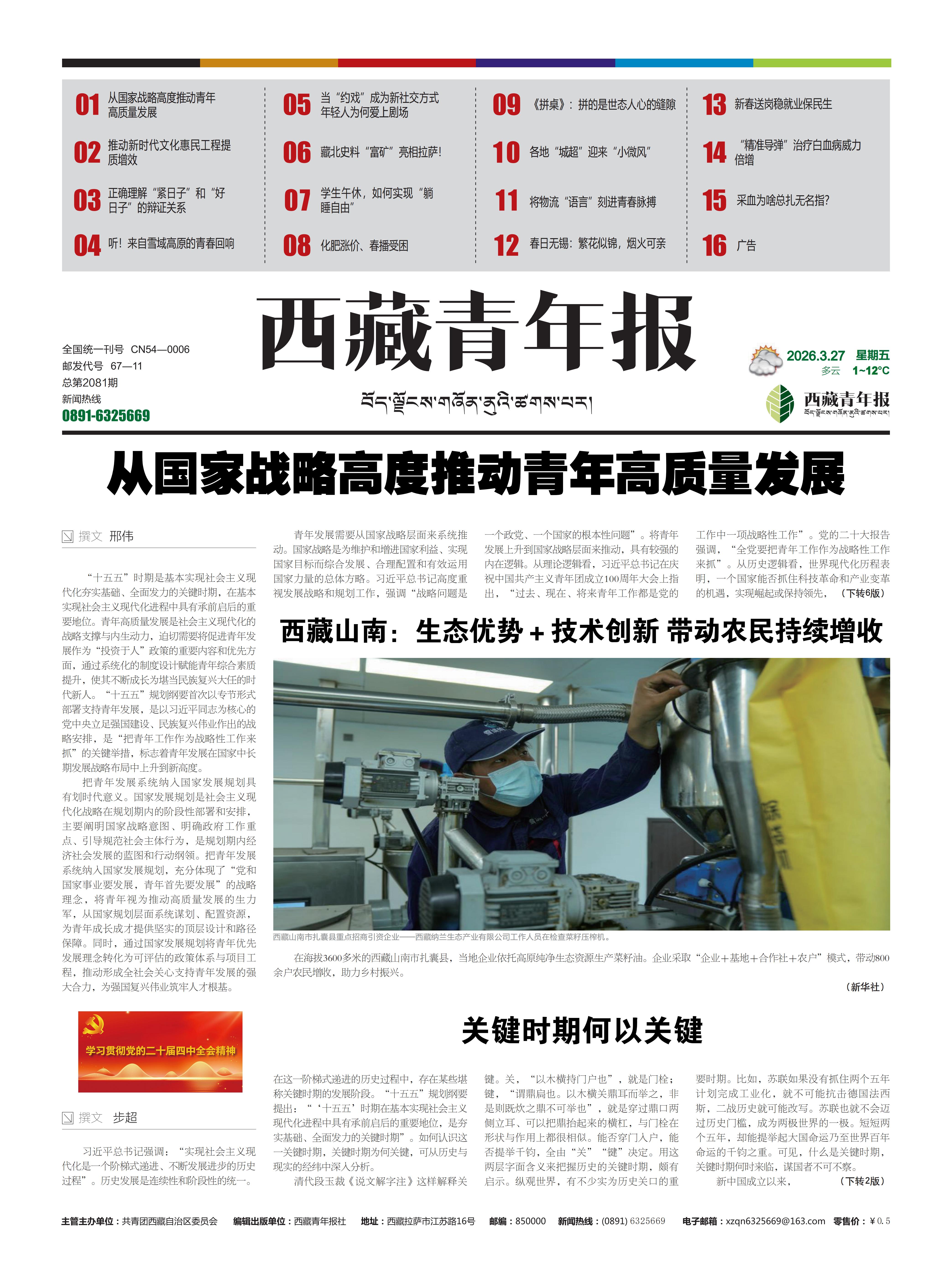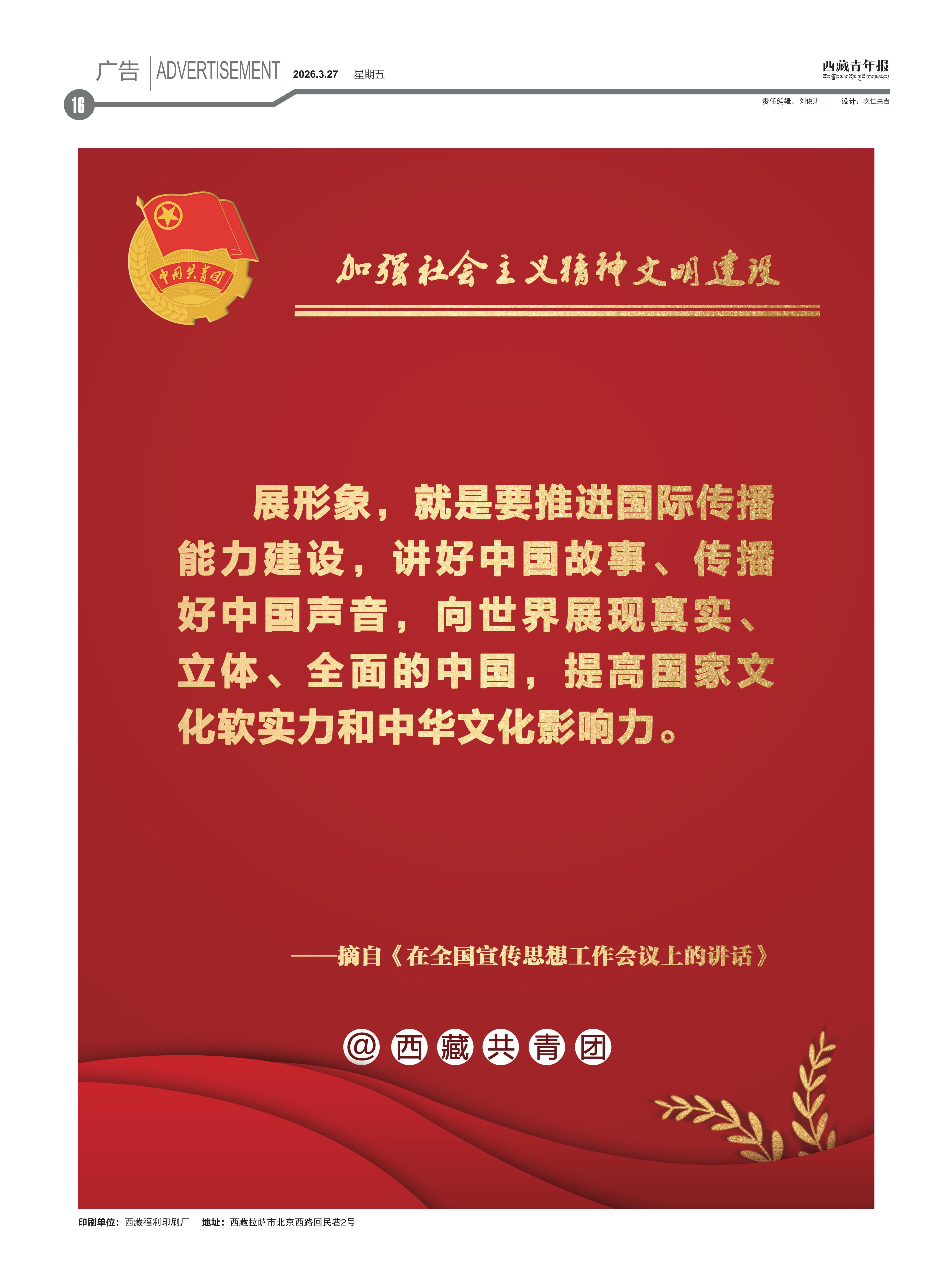 西藏青年报社出版  |  国内统一刊号:CN54—0006  |  邮发代号:67—11