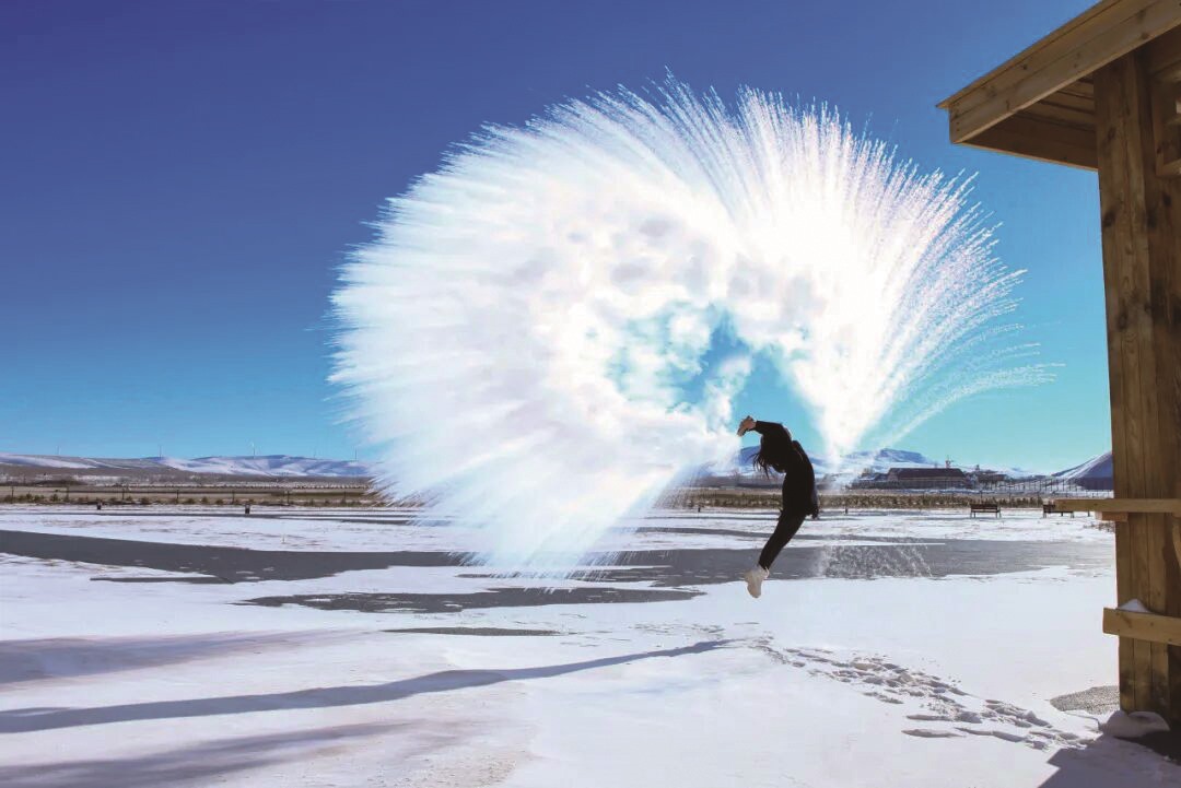 当滚烫的热水从半空倾泻而下,遇上零下三四十度的刺骨寒风,刹那间化作万千晶莹的冰晶,在阳光下折射出七彩光芒。