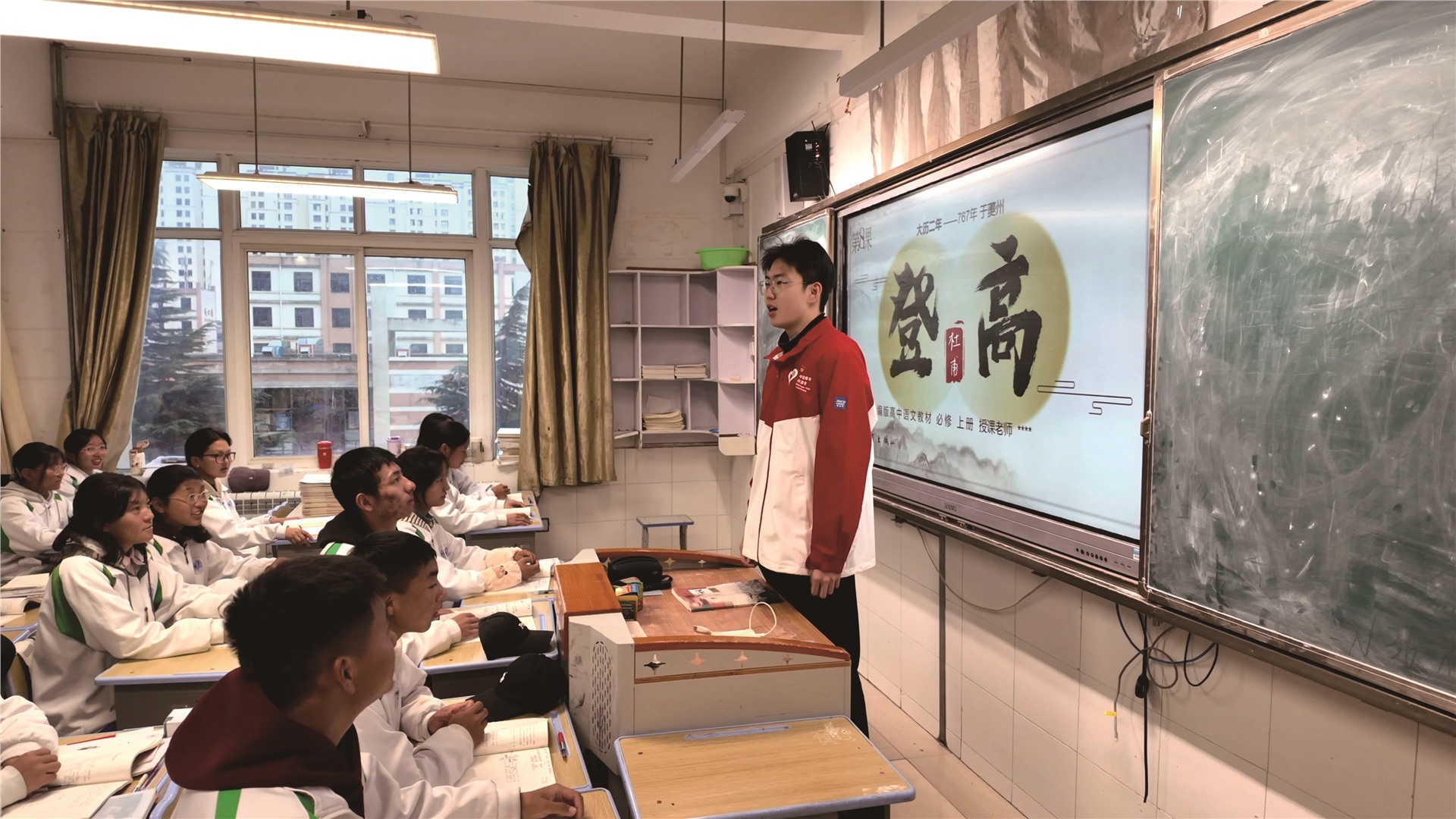 教室里,李玥潼带领学生朗读《登高》。本报记者 陈枭 摄