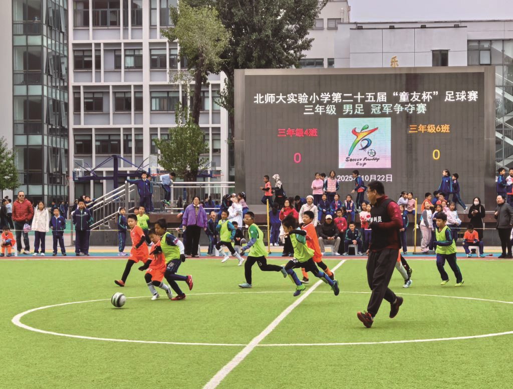 午后,暖阳洒在黄城根小学的绿茵场上。经过一个多月的较量,校内“班超”联赛迎来“巅峰对决”。三年级1班与16班上场争冠,呐喊声、擂鼓声一浪高过一浪。带球、抢断、传球,碰撞、摔倒、爬起——孩子们动作略显稚嫩,但拼劲动人心魄。