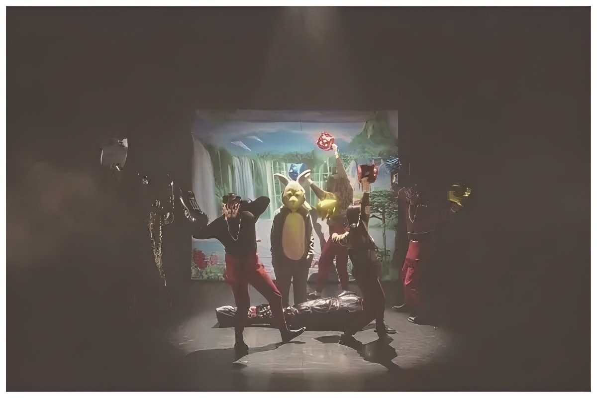 正是在这样的结构中,话剧《鸟寻得》呈现出一个具体而现实的舞台故事:一个女孩如何因为父母的突然离开,学习用童话理解生活和世界。全剧所有演员都戴上面具,肢体以夸张的牵线木偶风格演绎;人正在变形为物,物正在伪装成人。在剧中,与19世纪格林童话并行的,还有当代迪士尼童话。鸟寻得的妈妈是去找自由了——鸟寻得的玩偶,来自《小鹿斑比》的兔子桑普说。可自由在哪里?会在桑普从未去过的故乡迪士尼乐园吗?