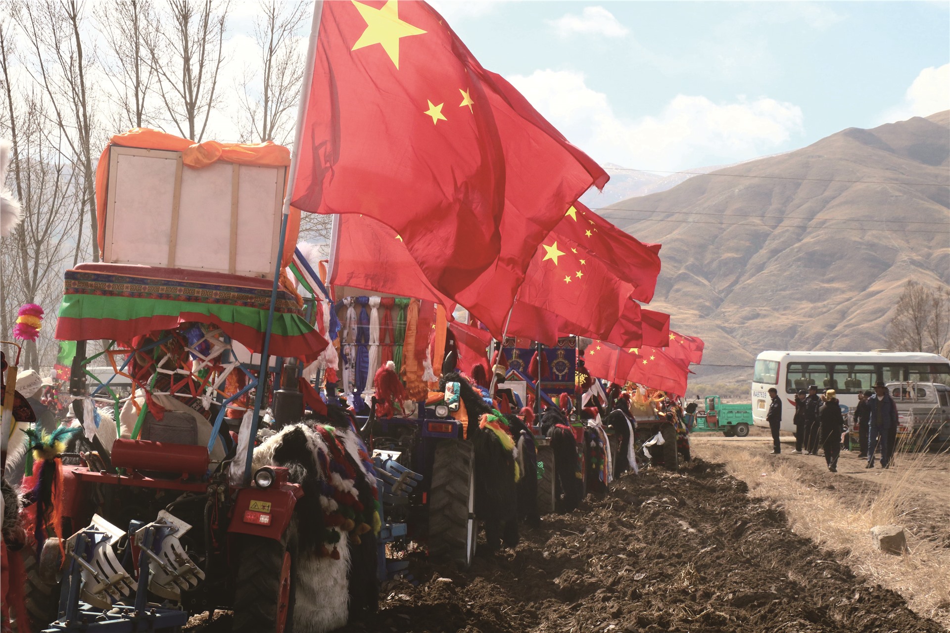 一列列拖拉机在春耕仪式中轰鸣入田。本报记者 次仁白吉 摄